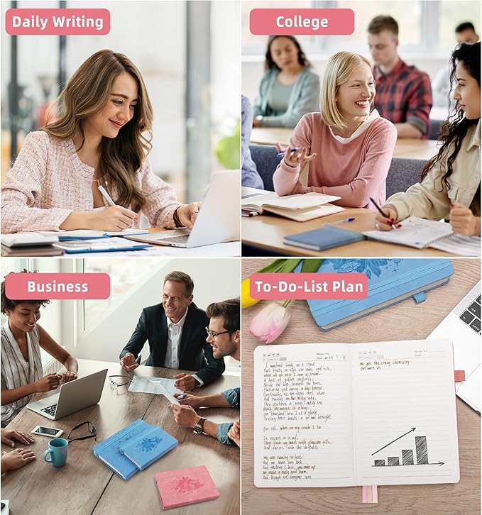 - 【Hardcover Leather&Elegant Design】This lined notebook features a high-quality faux leather cover. The gorgeous "FLOWER" pattern provides a premium look and comfortable feel; The hardcover better protects the pages, combined with sturdy binding, giving you a high-quality writing experience.