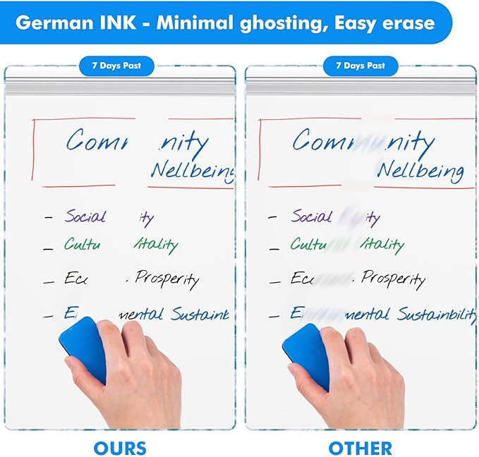 - Effortless Erasing: The premium German ink allows for smooth writing and effortless erasing without smudges. Perfect for classrooms, interactive teaching, or home learning sessions with dry erase markers.