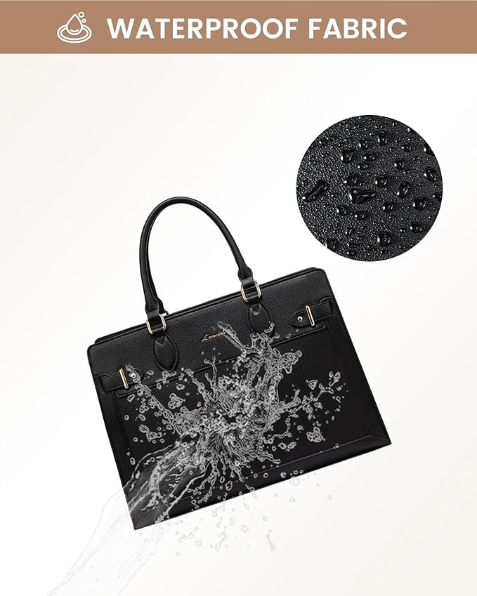 - Stylish Laptop Bag: Crafted from waterproof and durable PU leather,this laptop tote bag,offering a chic and professional appearance, is water-resistant,anti-wrinkle,scratch-resistant,and wear-resistant,making it perfect for working women.