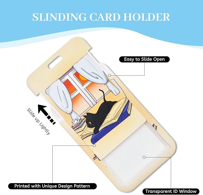 - 【Unique Design】This cute lanyard with id holder features unique arts: A black cat lying on a book, which adds happiness to your life and work. Our lanyard with id badge holder is available in a range of vibrant colors and boasts a distinctive design, ensuring that it not only catches the eye but also adds a touch of style to your attire.