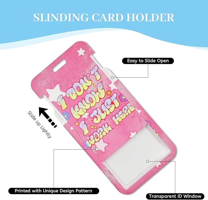 - 【Unique Design】This cute lanyard with id holder features lovely arts: pink star floral background with the sentence "I DON'T KNOW I JUST WORK HERE", which adds a lot of fun to your life and work. Our lanyard with id badge holder is available in a range of vibrant colors and boasts a distinctive design, ensuring that it not only catches the eye but also adds a touch of style to your attire.