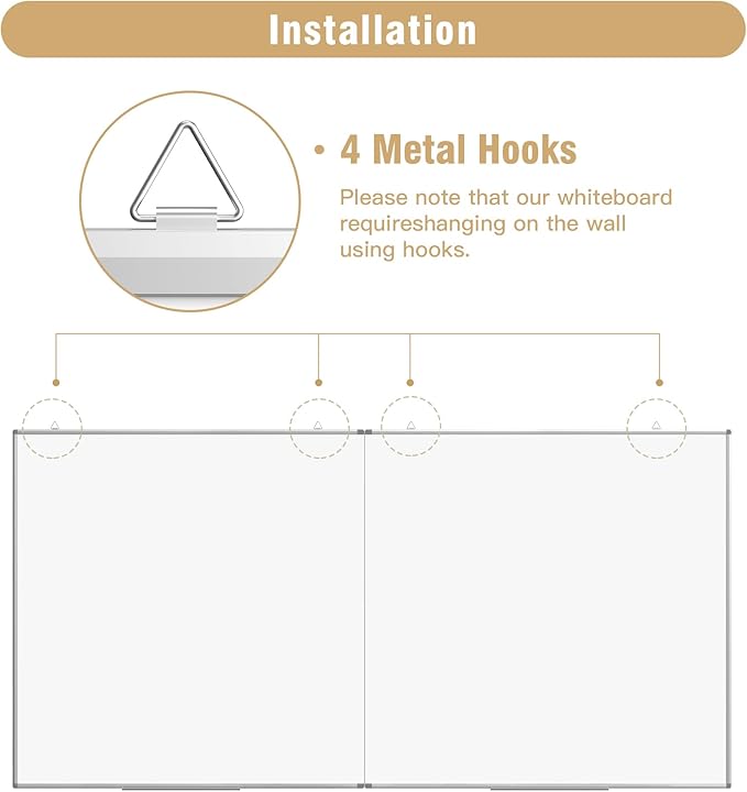 - 🌟✔ 【Flexible Mounting Options】 This whiteboard comes equipped with metal hooks on the longer side, designed specifically for horizontal mounting, ensuring an effortless installation to fit your space needs. Additionally, the double-sided foam tape on the back of the board guarantees a sturdy and shake-free writing environment.