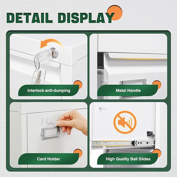 - 〖Document Storage Security〗One key to lock all drawers,each drawer can hang A4/F4/Letter/Legal and other file types;Each drawer can hang at least 150 files,drawer dimensions: 12.86"WX16.18"DX9.44"H.