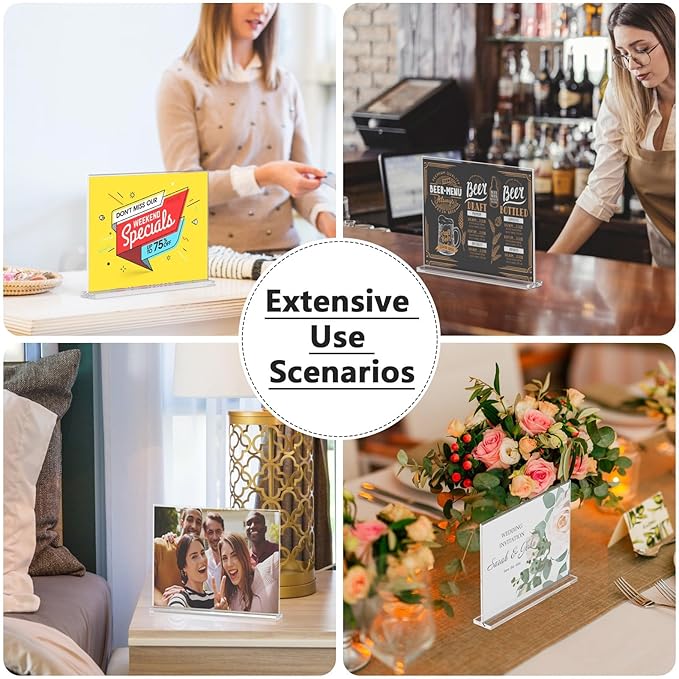 - Widely Used: 2 Pack 8.5x11 acrylic sign stands can meet your different needs. They can display flyers, advertisements, menus, brochures, etc, and can be used in restaurants, offices, weddings, vendor events, or small business supplies.