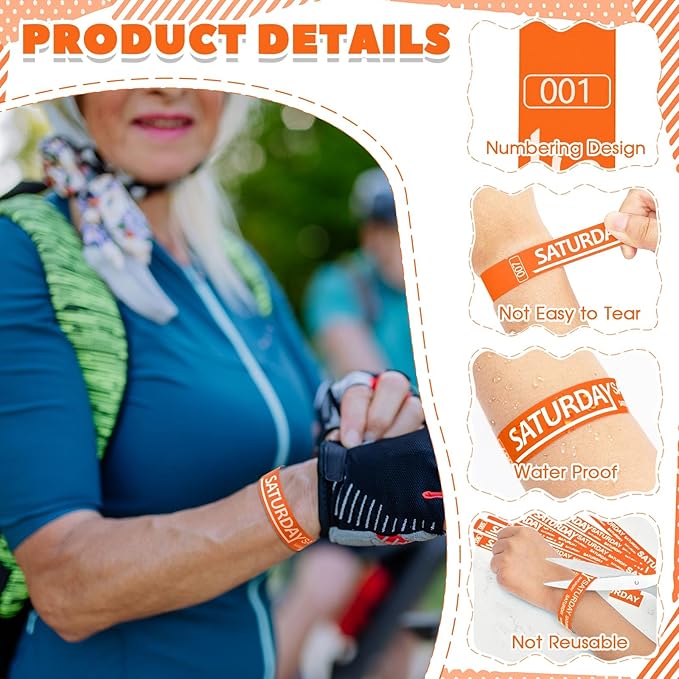 Henoyso 600 Pcs Saturday Paper Wristbands Event Wristbands Paper Bracelets Wristbands Numbered Waterproof Party Wristbands for Events Day of The Week(Orange)