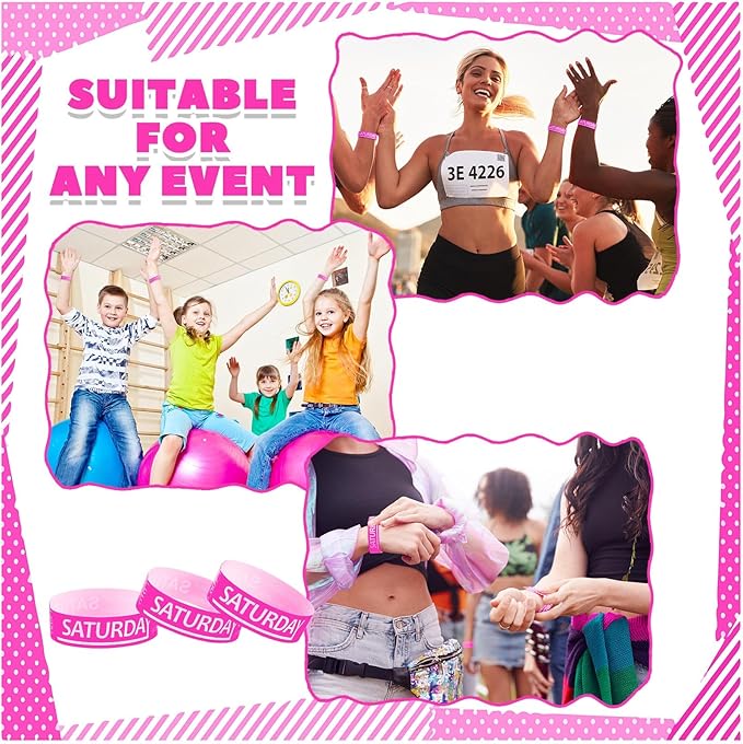 Henoyso 600 Pcs Saturday Paper Wristbands Event Wristbands Paper Bracelets Wristbands Numbered Waterproof Party Wristbands for Events Day of The Week(Rose Red)
