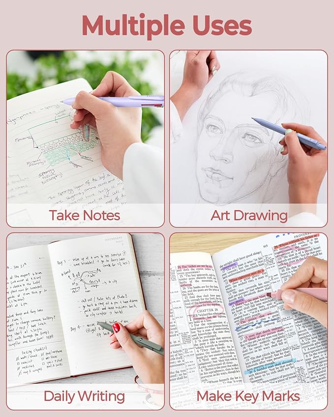 - [6 PCS Multicolor Pens] This 4-in-1 pen offers black, blue, green, and red ink, so you can easily switch colors when taking notes, coloring, or DIY journaling. Handy for nursing students and college use, It’s part of your nursing school essentials and a nice add-on to your school supplies for girls