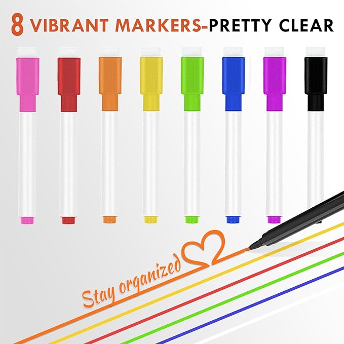 - 【Highlight Markers,Bright handwriting】The magnetic fridge calendar dry erase set come with 8 markers with 8 vibrant colors are visible on any background, light or dark.The markers with fine pen tip are smooth to write on the organic glass acrylic transparent whiteboard.