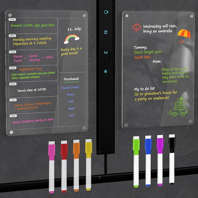 - 【Minimalist Style Magnetic Fridge Calendar Set】The acrylic calendar for fridge made of premium high transparency acrylic,minimalist design makes it more sleek and modern.It will become your daily life planning assistant.You can easily jot down upcoming events, such as meetings,important festivals,anniversaries,meal plans,fitness plans,etc.Keep the whole household on a schedule