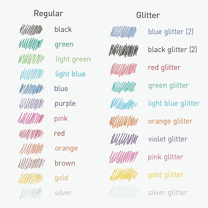 - This Pentonic multicolor gel pen set comes with 24 pens in assorted colors (12 classic colors, 12 glitter colors)