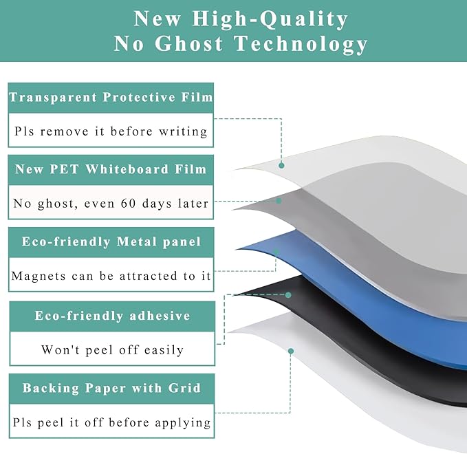 - Innovative Design: Our self-adhesive white board has a unique design. We are 4 times thicker than ordinary dry erase white board paper and use high quality PET writing film, it also attracts light magnets (such as magnetic alphabets & numbers, magnetic map puzzle, animal magnets set), as well as memos, photos and other small objects, turning any smooth surface into a creative large multifunctional magnetic receiving board.