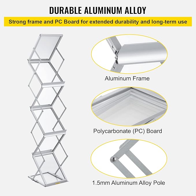 - Sturdy and Stable: This literature display rack is made of an aluminum alloy frame and PC board, which are rust-free and corrosion protection. The materials ensure durable and long-lasting use.