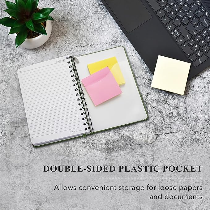 - NOTEBOOK WITH POCKETS - Our thick paper hardcover spiral notebook journals for women is equipped with a double-sided plastic pocket, and lets you securely store important documents, notes, or loose papers excellent for both personal and professional use.