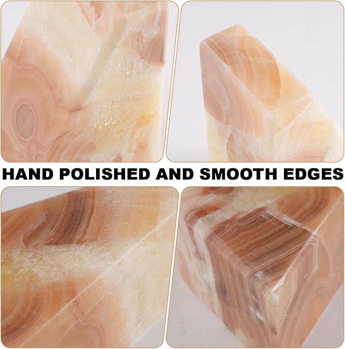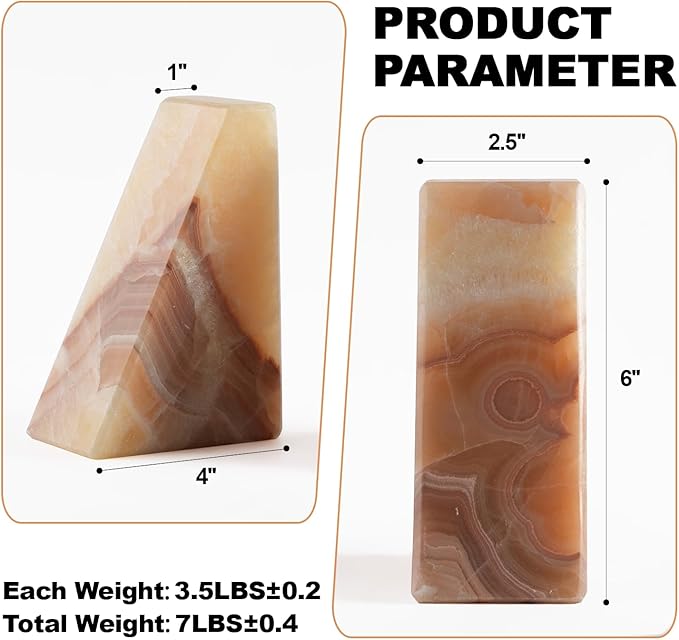 - STRONG AND DURABLE: These onyx from Mexico carry a rich cultural and historical sentiment in shades that resemble the afterglow of a sunset. Made of high-quality marble, karibiber unique decorative bookends for shelves maintains long-term stability and will not be deformed by external factors, ensuring that your books are always securely placed.