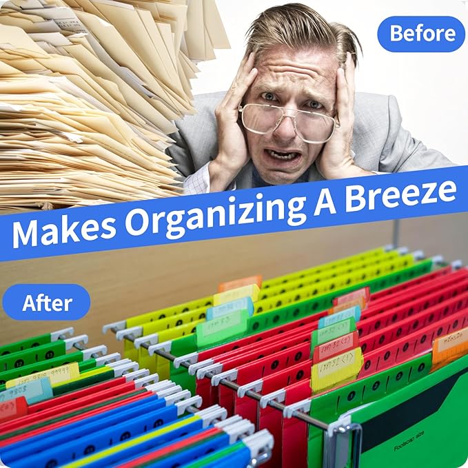- 📂【Makes Organizing A Breeze】The file folder tabs and inserts will help you label and find hanging files quickly, perfect folder tabs in office school and home. The sense of order will warm your heart