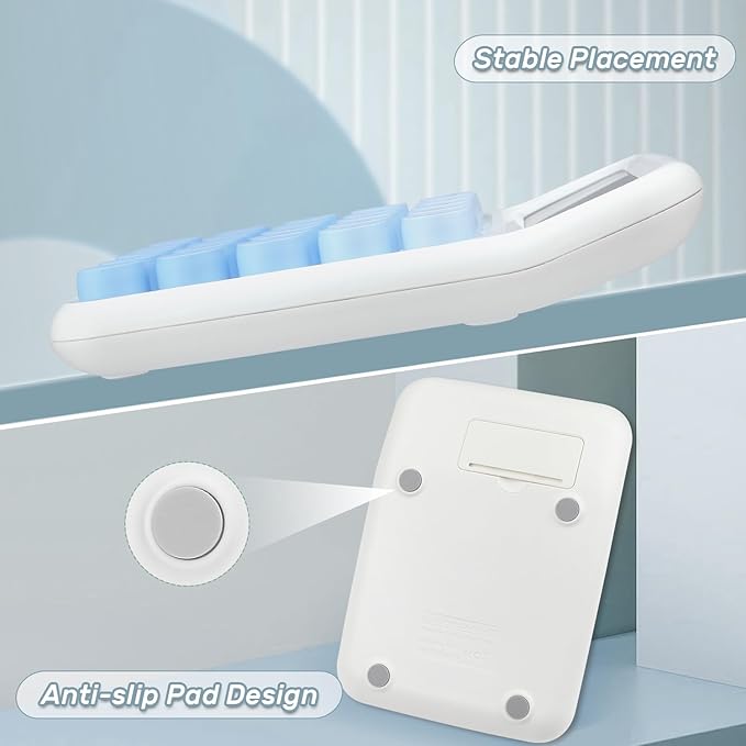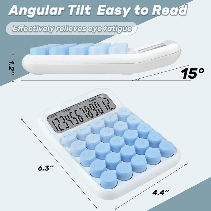 - 【Mechanical Switch Calculator】Imitating the knocking feel of a mechanical keyboard, the key operation is fast and accurate, bringing a pleasant experience. The touch of your fingers and the unique clicking sound are addictive. Large button, candy color.Large LCD screen,12-digit display, vertical back,15-degree angle for easy-to-read calculator.