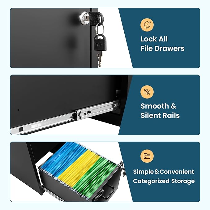 - Sturdy Metal Construction: The file cabinet is made of cold-rolled steel. which provide long using life. Powder-coated finish protects it from water and rust, resistant to scratches.