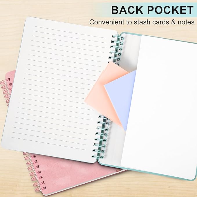 - Sturdy Spiral Twin-wire Binding & Inner Pocker: Feature a sturdy double spiral coil binding, the journaling notebooks are easy to flip the pages, flat and fold. Perforated inside pages allow to tear off unwanted pages. The back cover of the notebook journal includes an expandable pocket to store small objects. The elastic band on the outside of the lined notebook can also help you fix and mark pages perfectly. Perfect spiral bound journal notebooks for work, college supplies.