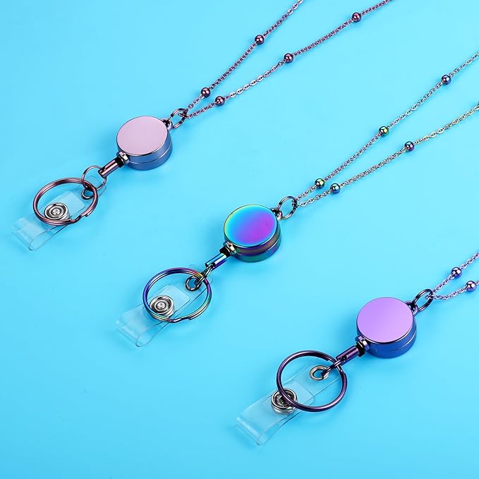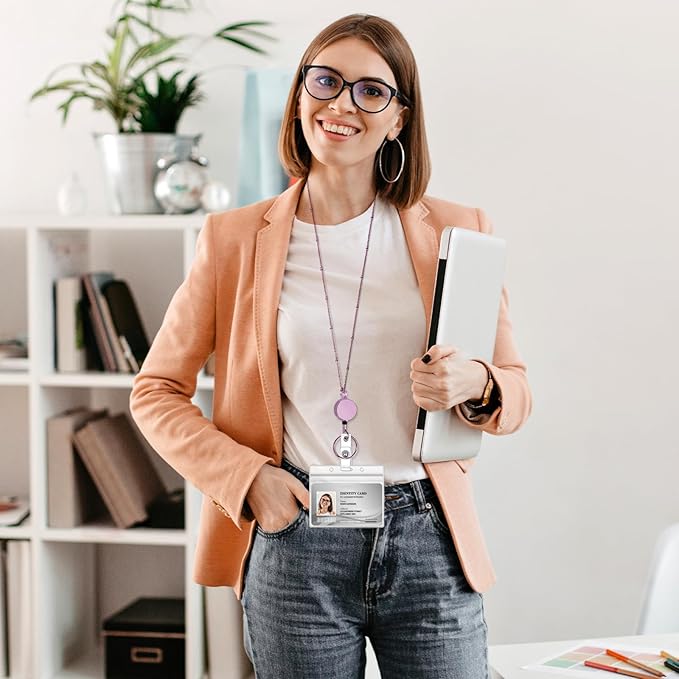 - 【You will Get】3 Pcs beaded badge lanyards, three colors of purple, pink, bright blue; 3 pcs retractable reel clip; 6 pcs waterproof badge holders, horizontal and vertical two styles, easily meet your different needs