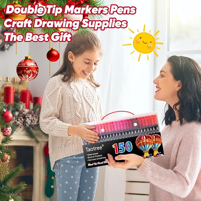 Taotree 150 Colors Dual Tip Art Markers Pens for Adult Coloring Book, Artist Fine & Brush Tip Coloring Markers Drawing Pen for Journaling Note Taking Lettering Calligraphy Craft Art Supplies Set
