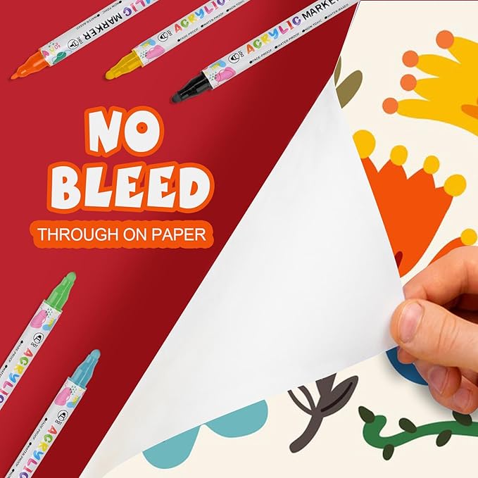 - Strong adhesion acrylic markers for Multi-Surface Any Project ---- Designed to perform on paper, fabric, wood, metal, glass, rock, and ceramic, these water-based markers provide consistent, fade-resistant, Waterproof and anti shedding, letting you create with confidence across multiple surfaces.