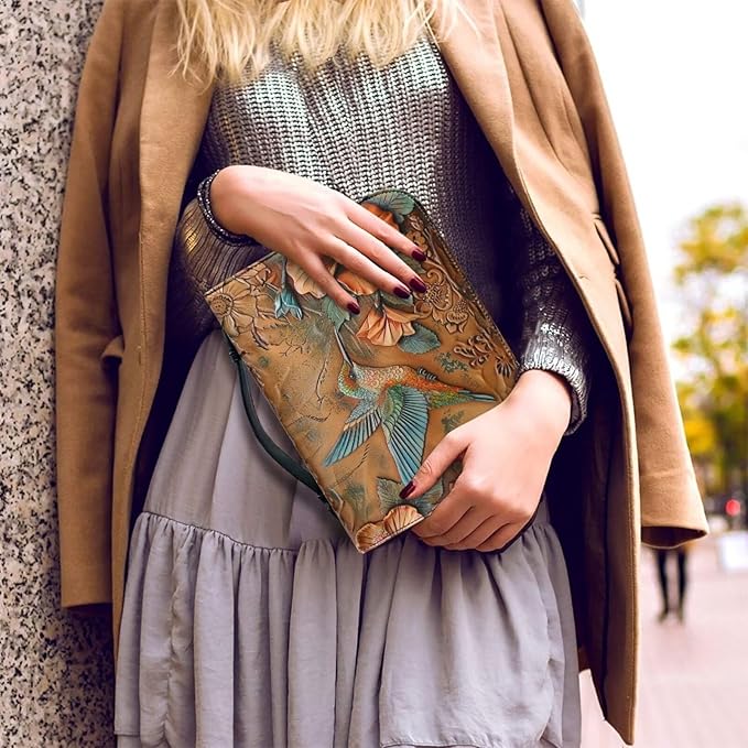 Lotusorchid Large Faux Leather Bible Cover, Hummingbird Bible Cover Case for Women with Handle Pocket, Hibiscus Bible Book Carrying Bags Bible Tote Bag, Bible Study Accessories, Orange, XL