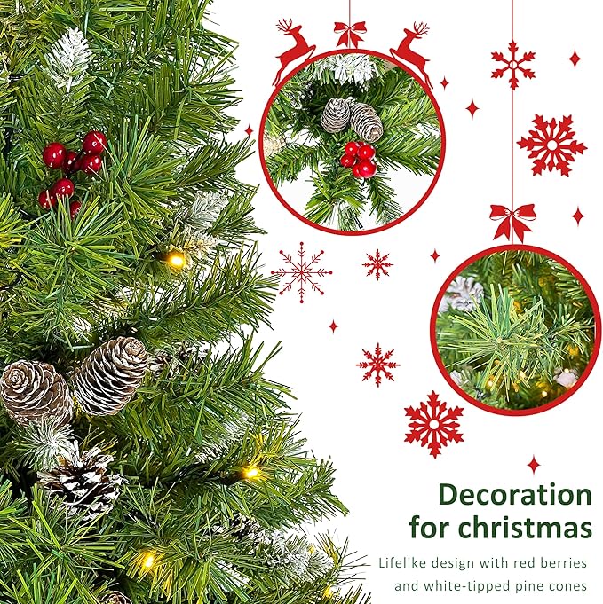 - Natural Lifelike Look - Designed with true-to-life details and 1000 branch tips that give the look of real evergreens, the trees, garland and wreath are festively studded with pine cones and red berries for extra spirit. It’s also ready for decoration with your own collection of ornaments for a spectacular personal statement.