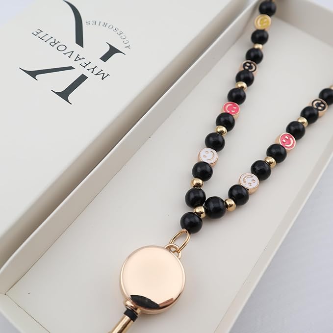 Smile Teacher Lanyard for Women with Retractable ID Badge Reel and Keychain Cute Happy Beads Lanyard