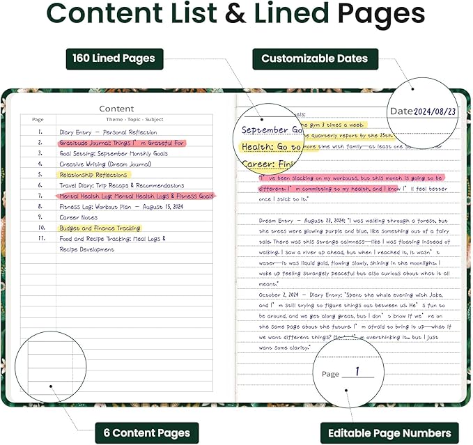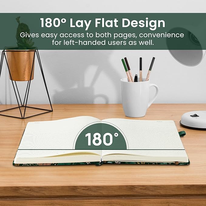 - Lay-Flat Design for Effortless Writing: The 180° lay-flat design makes writing a breeze for both left- and right-handed users. Whether you're jotting down quick notes or composing longer entries, this notebook provides total ease and comfort on any surface.