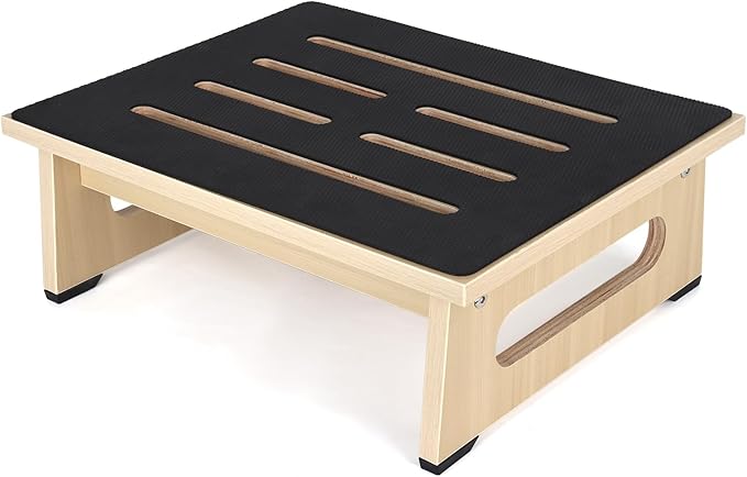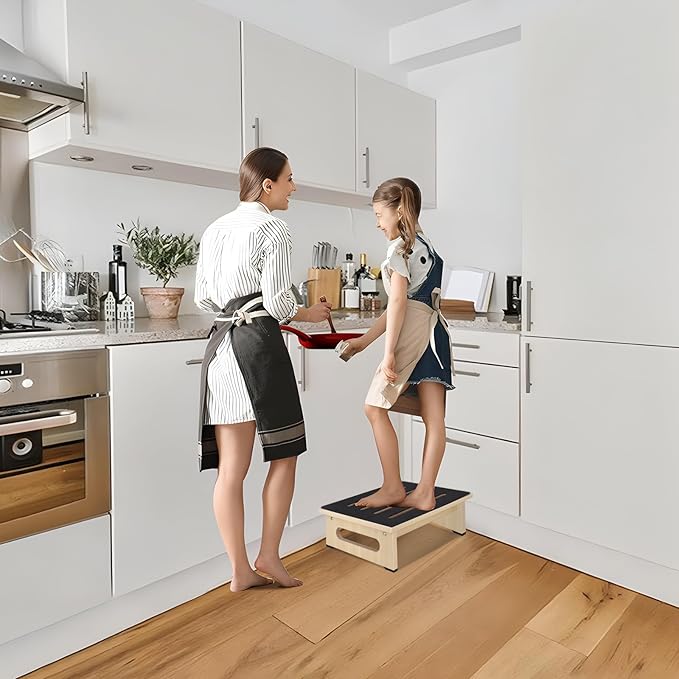 - 【Non-slip Tread Surface】 : Our wooden step stool has a larger surface of 15.75 inches x 12.60 inches. it is covered in a non-slid rubber to help reduce slips when stepping up or climbing down. besides, and there are anti-slip pads under the stool. which is vital for adults and elderly safety.Our platform step stool provides a 5.31 inch high support, acting as a step riser to help get onto higher steps. This stool with compact size is portable for carrying out and storing