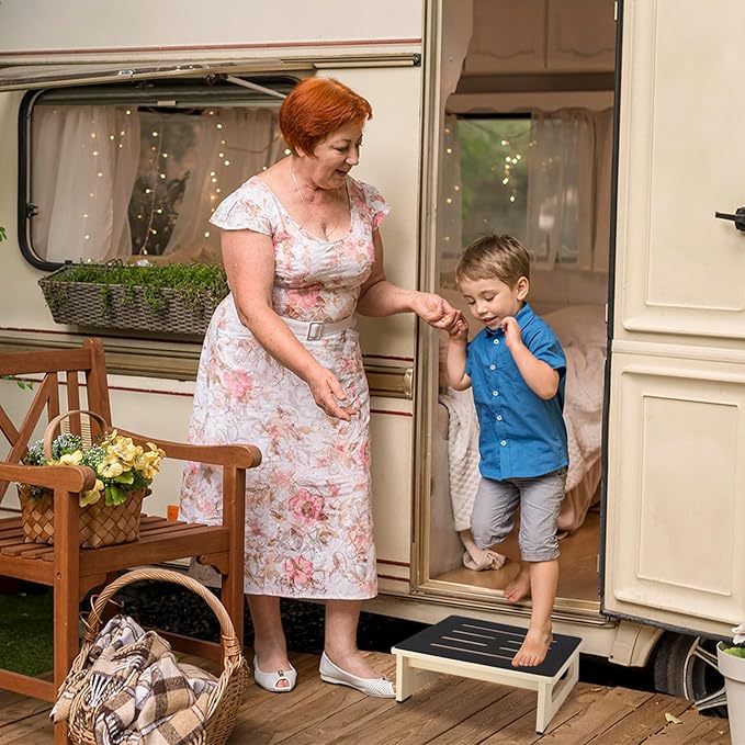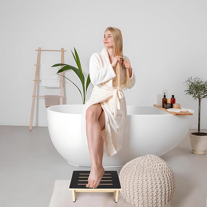 - 【More Than One Function】 : Available for outdoor and indoor use, as a step stool for getting in car, door entrance steps, bathtub step stool, toilet step stool, bedside step stool or office footrest step. It aids in reaching the kitchen shelf and serves as a convenient kitchen step stool for adults kids, useful for those recovering from surgery or battling joint problems. Of course, the step stool is perfect as a gift to show you care