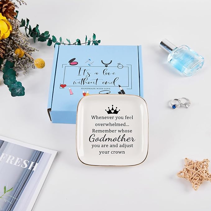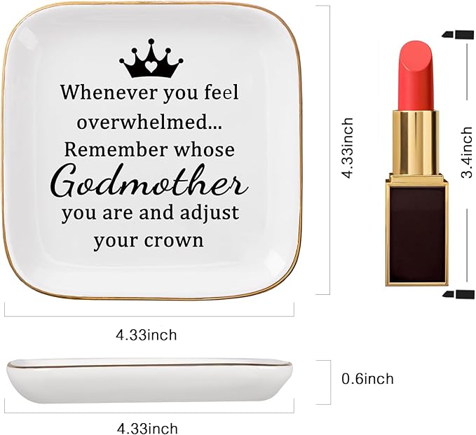 - Size: Great size 4.33" L x 4.33" W x 0.6" H, a stylish and elegant jewelry dish that keeps your godmother's everyday jewelry organized and reminds her how much you love her and appreciation