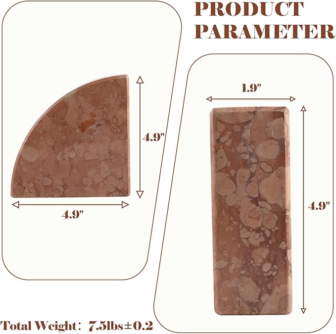 - NATURAL MATERIAL: The heavy duty bookend weight 7.5LB and are equipped with 4 non-slip pads to effectively minimize scratches on your desktop. Make your reading time more relaxing and ensure the safety of you and your family with this marble beookend.