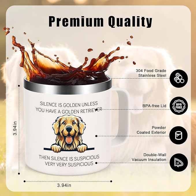 - Wonderful Golden Retriever Gifts: Are you looking for enchanting and thoughtful golden retriever gifts? Look no further. Our “Silence is Golden Unless You Have A Golden Retriever” 14oz coffee mug serves as a unique golden retriever gift for women, suitable for occasions like Birthday, Christmas and Thanksgiving