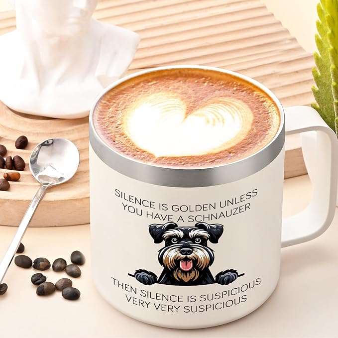 Lifecapido Schnauzer Gifts, Silence is Golden Unless You Have A Schnauzer 14 oz Insulated Coffee Mug, Dog Lover Gifts, Dog Mom Gifts, Birthday Christmas Gifts for Schnauzer Lovers, Pet Lovers, White
