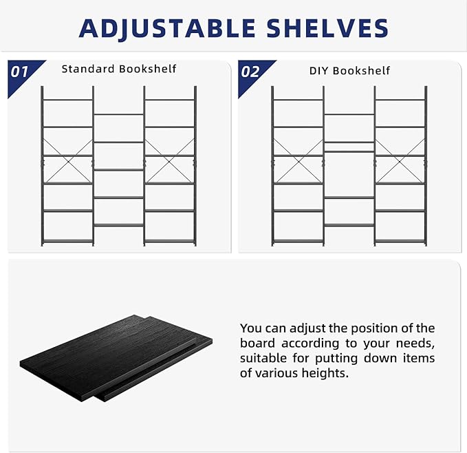 - 【Adjustable Shelves】: Unlike fixed shelves that limit the height of display items, our bookshelf features an adjustable design. You can easily modify the position of each shelf to accommodate items of various sizes, allowing you to customize a bookshelf that perfectly suits your needs