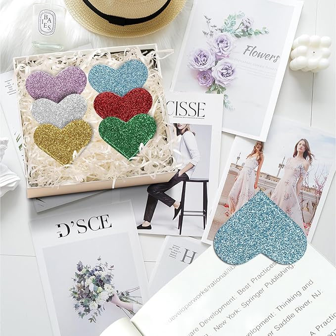 Leather Heart Bookmarks - Winjeto 6 Pieces Cute Corner Page Book Marks for Teachers Students Book Reading Lovers, for School Office Home Supplies (Glitter(6pcs))