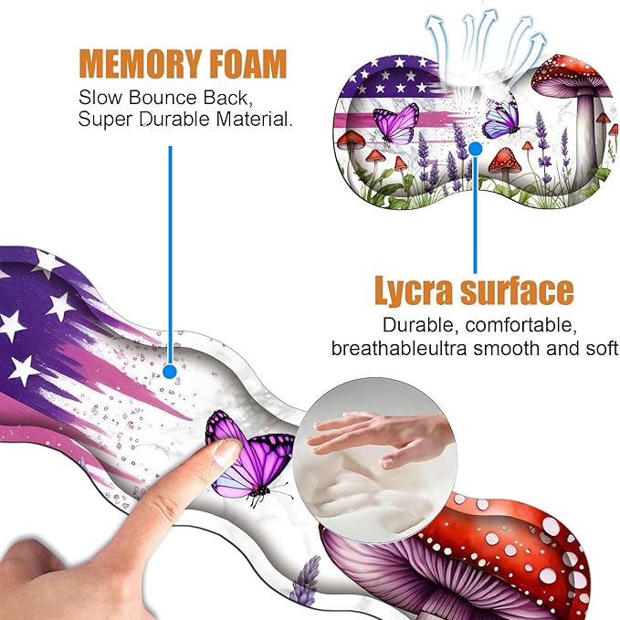 4 in 1 Ergonomic Keyboard Wrist Rest & Mouse Pad Wrist Rest Set, Large XXL Gaming Desk Mat 31.5"x 11.8" with Non-Slip Base, Memory Foam for Home Office Study Gaming, American Flag Mushroom Butterfly