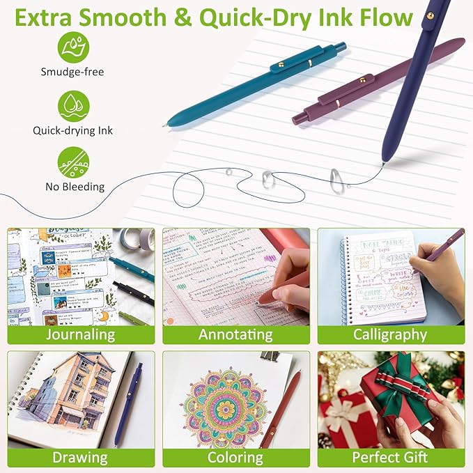 - PREMIUM QUALITY AND VIBRANT COLORED PENS: The Whole set includes a 6-pack of colorful gel pens, providing a fun and colorful way to add variety to your writing and drawing tasks.Ideal for everyday use like note-taking, journaling, and drawing at home, school, and office