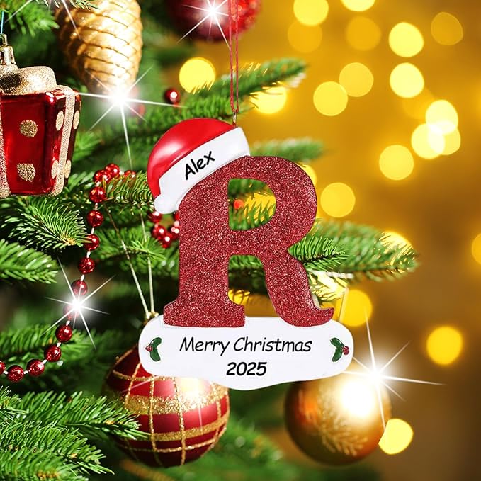 Personalized 26 Letters Ornaments for Christmas Tree 2025, Custom Christmas Ornament with Family Member's Names 3D Resin Xmas Hanging Pendant Original Gifts for Family Friends(R)