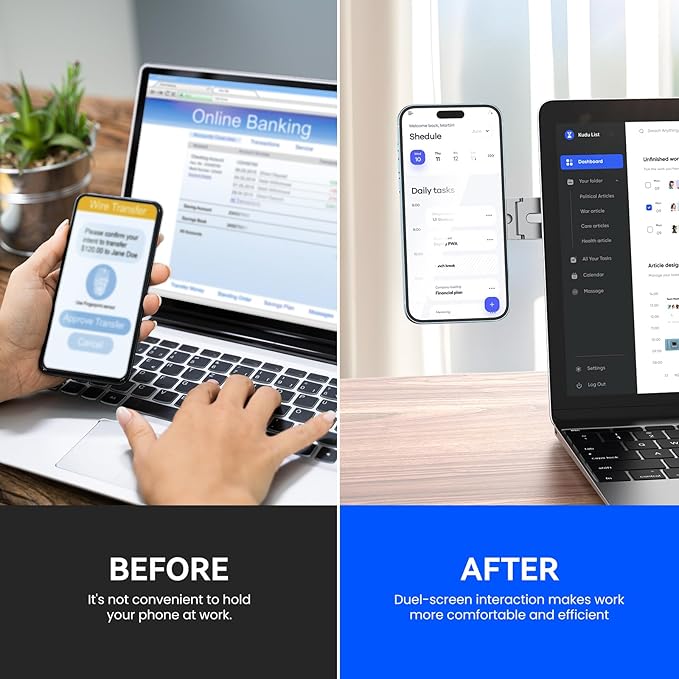 - Adjustable Magnetic Phone Holder: The new upgraded adjustable magnetic phone holder allows you firmly attach your phone to any laptop, desktop monitor, computer monitor for Tesla. You can easily view text messages or answer calls at work, enjoy double screen interactive, improve office efficiency.