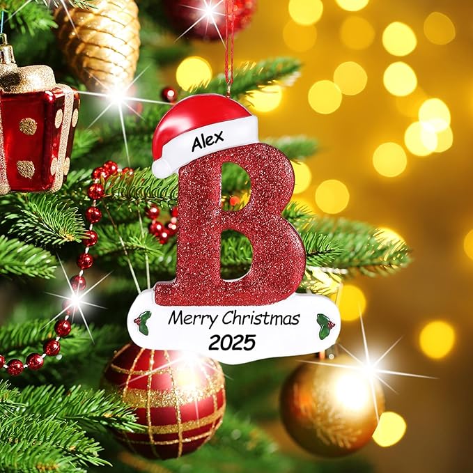 Personalized 26 Letters Ornaments for Christmas Tree 2025, Custom Christmas Ornament with Family Member's Names 3D Resin Xmas Hanging Pendant Original Gifts for Family Friends(B)