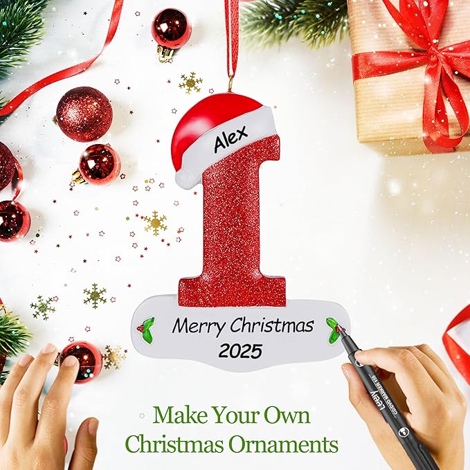 - 【Custom Christmas Ornament with Names】We provide a black permanent marker - special for personalized ornaments. You Got this to write your family member's names on ceramic ornaments, and let them dry after application, your name and year will be permanently marked on the holiday decorations. Or You can DIY your own style, which will leave fun and unforgettable memories. (Please kindly note, If making mistake, erase it with alcohol or nail polish remover.)