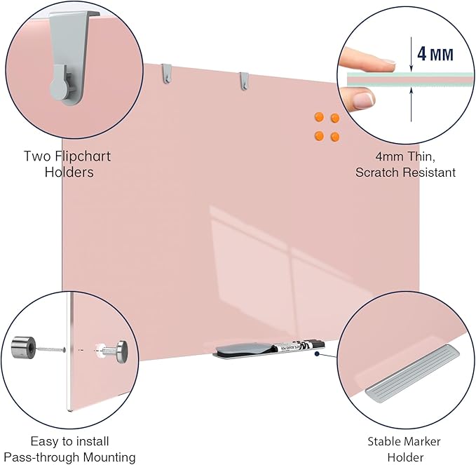 - EASY TO INSTALL - This glass whiteboard uses sturdy mounting parts to make installation easier, firm and safe. Just insert the screws into the wall and snap the whiteboard into the slots of the button screws. The hanging design allows this glass whiteboard to take up no space in your office or home.