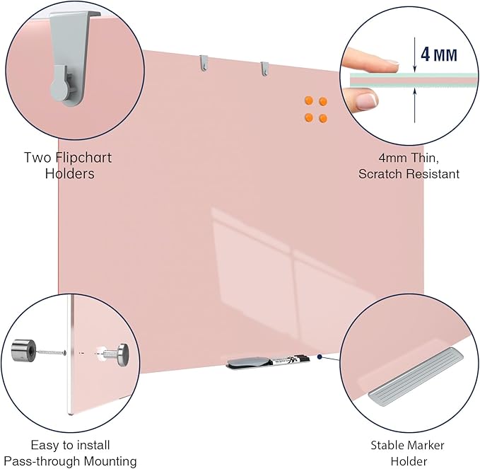 - EASY TO INSTALL - This glass whiteboard uses sturdy mounting parts to make installation easier, firm and safe. Just insert the screws into the wall and snap the whiteboard into the slots of the button screws. The hanging design allows this glass whiteboard to take up no space in your office or home.