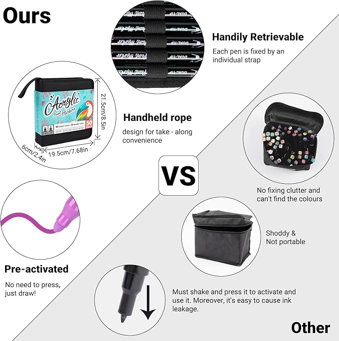 50 Colors Dual Tip Acrylic Paint Pens Cotton Nib Markers with Quick Dry Ink (1mm Fine & 5mm Dot Tips) Rock Painting, Wood, Fabric, Glass DIY Art Supplies for Adults Kids, Christmas Gifts