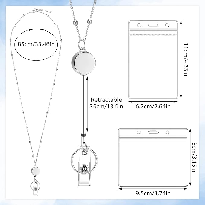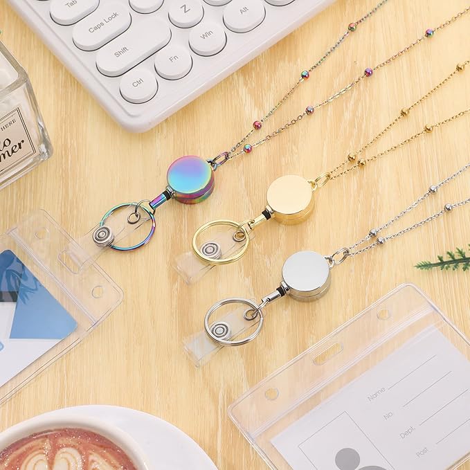 - 【Value Combination】3 Pcs beaded badge lanyards, three colors of gold, silver, bright blue; 3 pcs retractable reel clip; 6 pcs waterproof badge holders, horizontal and vertical two styles, easily meet your different needs
