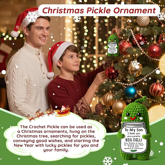 MAMAGIFTREE Funny Son Birthday Gifts Christmas, Stocking Stuffers for Kids or Adults Son, Unique Son Gifts from Mom or Dad, to My Son Present- Handmade Crochet Pickle for Son in Law Gifts