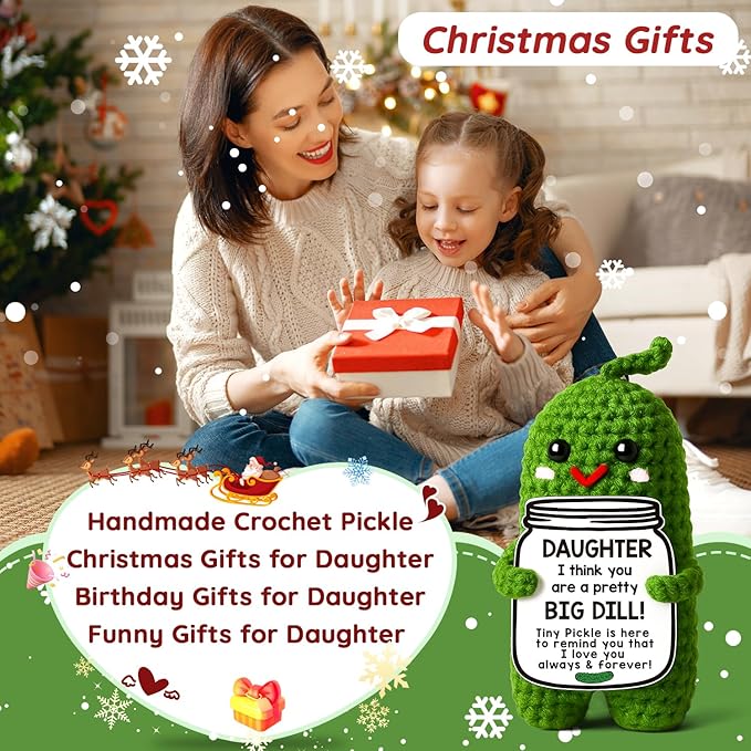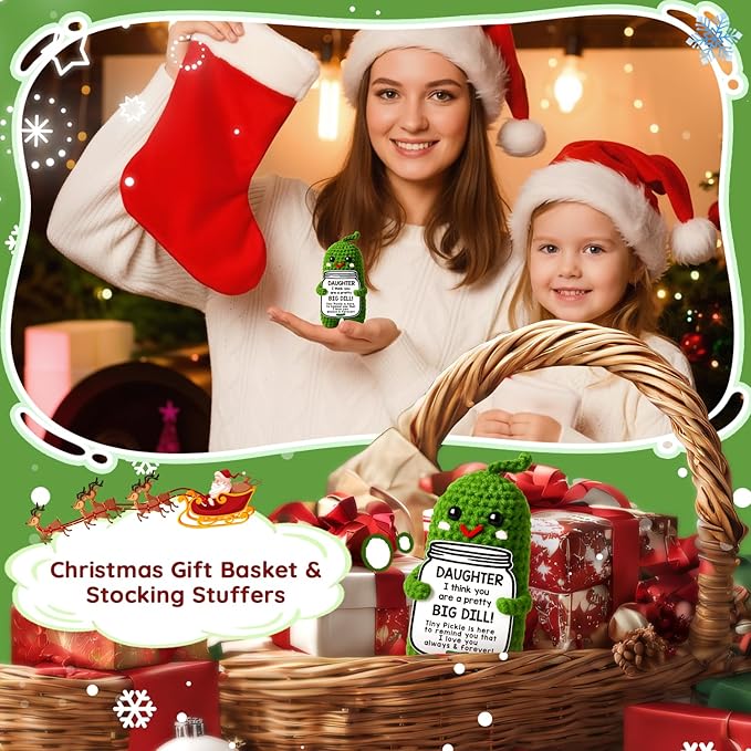 MAMAGIFTREE Christmas Daughter Gifts Stocking Stuffers, Pickle Plush Crochet Birthday Gifts for Daughter,I Love You Daughter Gifts from Mom, Thanksgiving Basket Unique Gifts to My Daughter