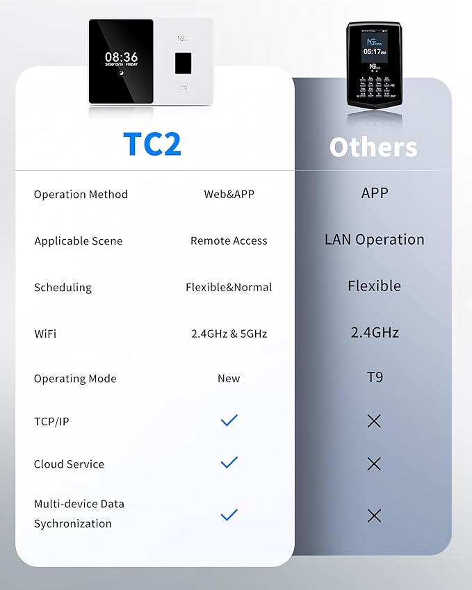 - 2.4GHz & 5GHz Dual Bands WiFi: NGTeco cloud time clock supports 2.4G and 5G Wi-Fi, ensuring fast, reliable connections for seamless performance. No more interruptions—just smooth, consistent connectivity for your office needs.